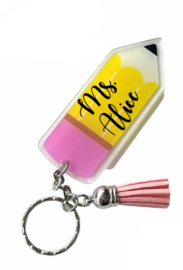 - Teacher's name ( If no customization is left the Pencil Keychain will come as shown with no personalized detail)