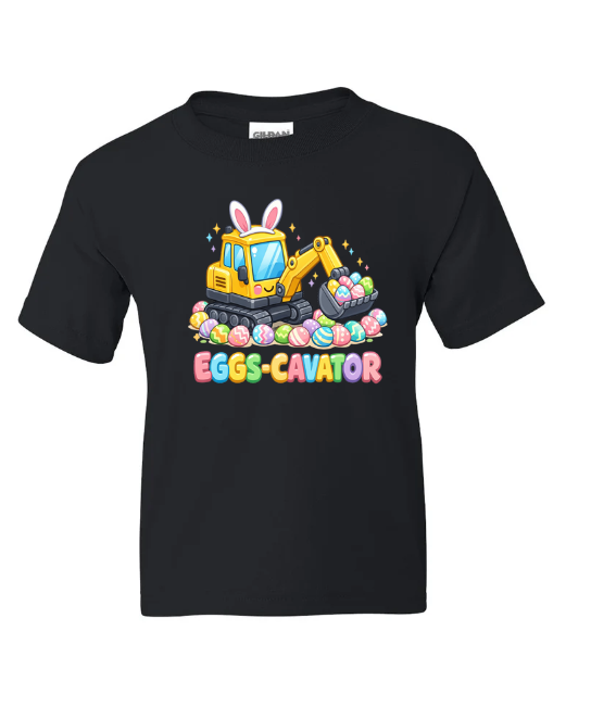 This youth graphic tee features a bright yellow excavator with bunny ears, ready to scoop up every colorful egg in sight. It’s the perfect gear for the kid who’d rather be at a construction site than a brunch table.