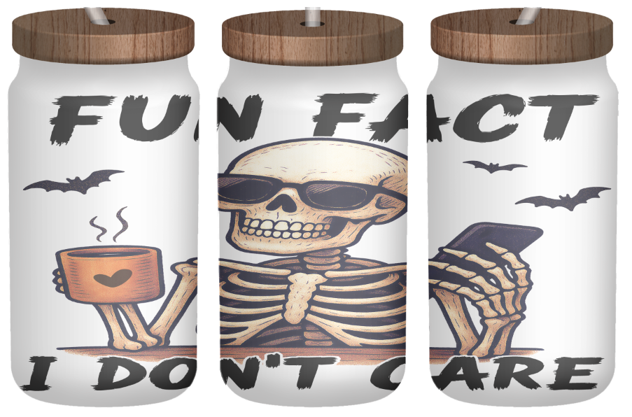 Fun Fact: I Don’t Care | 16oz Frosted Glass Can with Bamboo Lid & Straw