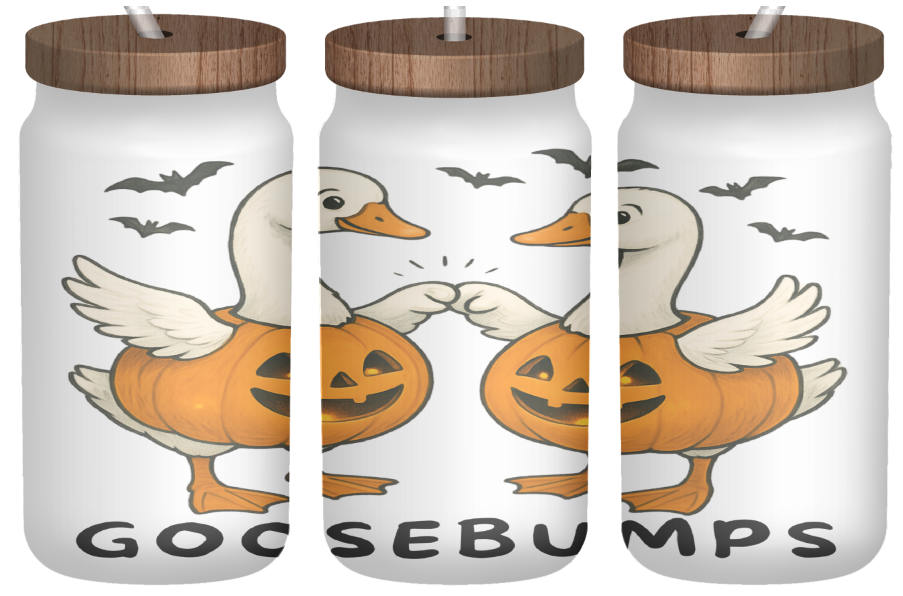 Playful geese, pumpkins, and Halloween charm make this tumbler a fall favorite.